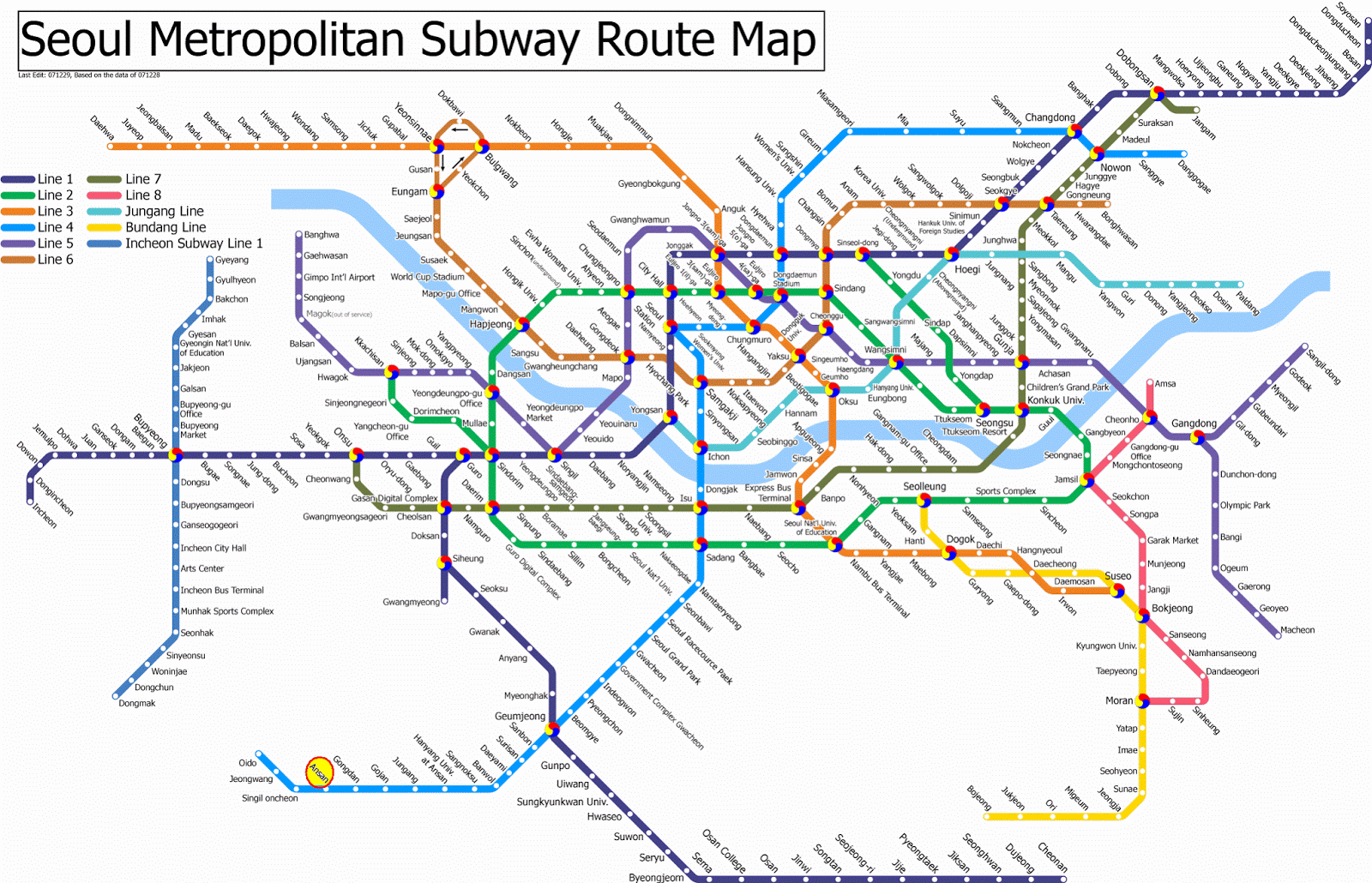 Most of the interesting places in Seoul are conveniently reachable by their subway. You can download the Seoul Metro app in your phone or get the subway map from any of the nearest subway station.